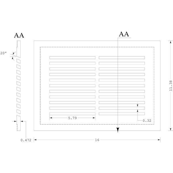 – 20 degree angled vent slots for directional venting.