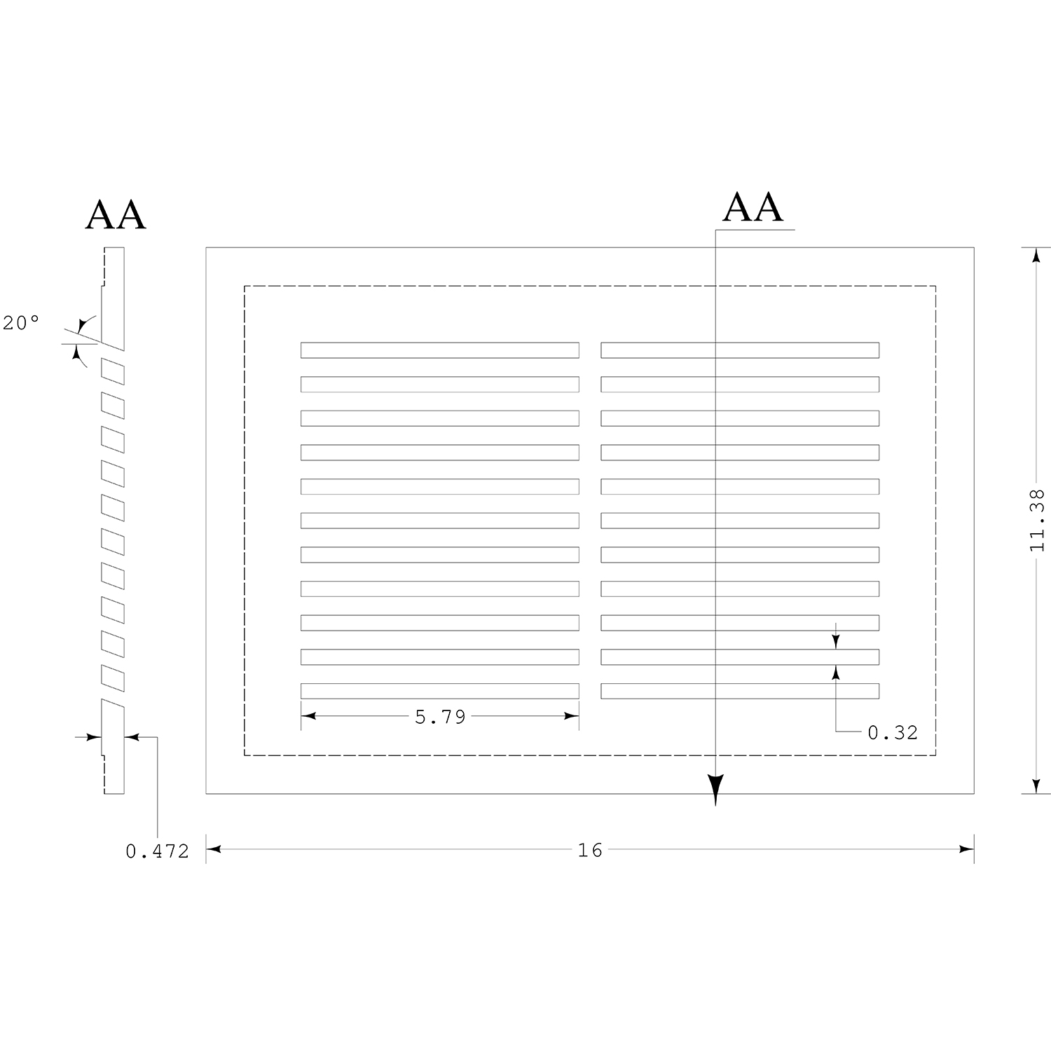– 20 degree angled vent slots for directional venting.