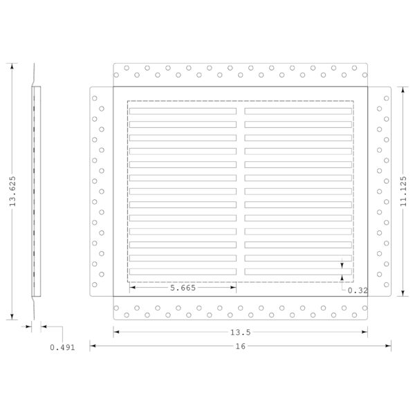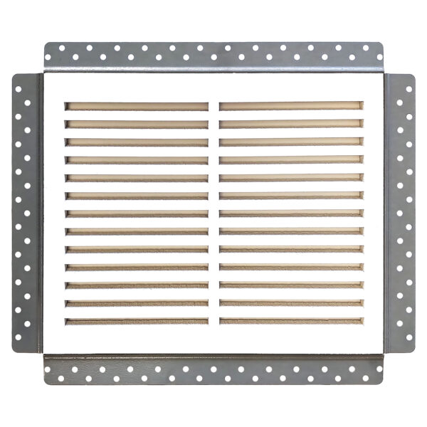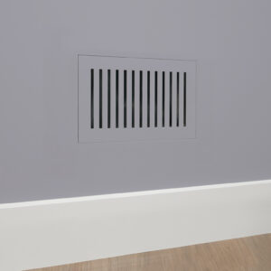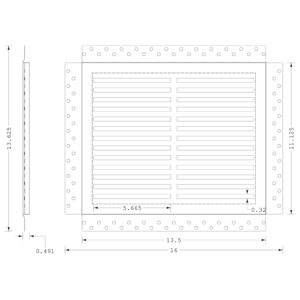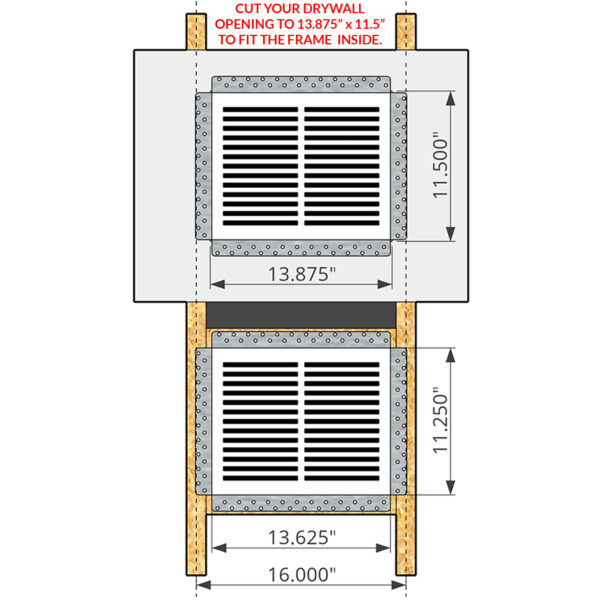 This Cold Air Return cover is magnetic and removable. It was designed to replace the standard duct size opening of 14″ x 8″. The frame muds right into your wall with a finished size of 16″ x 13 5/8″ x 1/2″. It fits into a drywall opening of 13 3/4″ x 11 1/2″ and has a slotted area of 12″ x 8 3/4″.