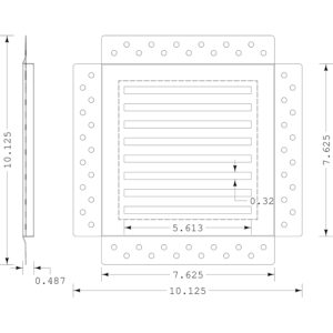 This premium flush exhaust fan cover for an 8″ x 8″ drywall opening is magnetic and removable. Designed for both ceiling and wall applications, the MAG-X 8 can also be used as a cold air return cover. The frame muds right into your wall or ceiling with a finished size of 10.125″ x 10.125″ x 1/2″. It has a slotted area of 5.6″ x 5.6″ offering over 14 square inches or open area, and a 6.125″ x 6.125″ accessible area.