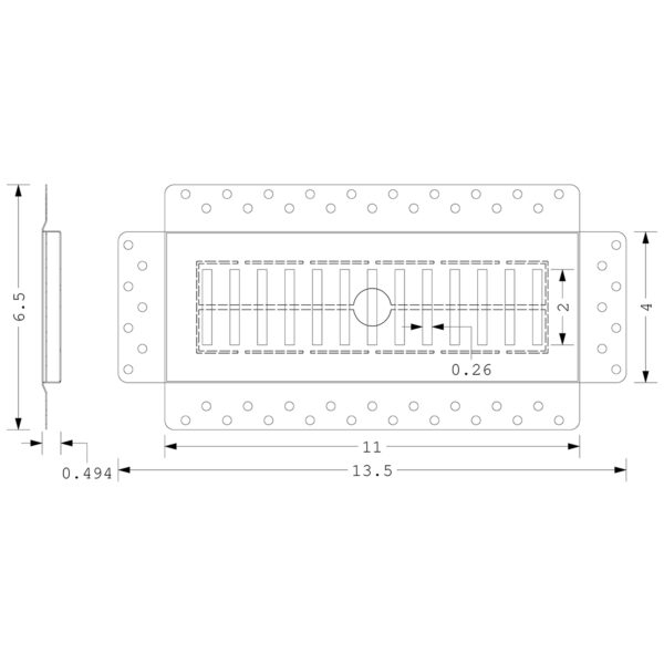 This magnetic flush mount ceiling or wall supply vent cover is removable and was designed to replace the standard cover for a 3″ x 10″ duct. It fits into a drywall opening of 4″ x 11″ and finishes at 6 1/2″ x 13 1/2″ x 1/2″.