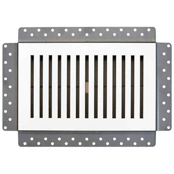 This magnetic flush mount ceiling or wall supply vent cover is removable and was designed to replace the standard cover for a 6″ x 10″ duct. It fits into a drywall opening of 7″ x 11″ and finishes at 9 1/2″ x 13 1/2″ x 1/2″.